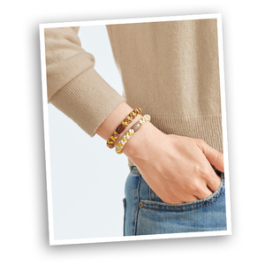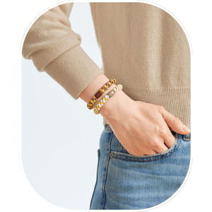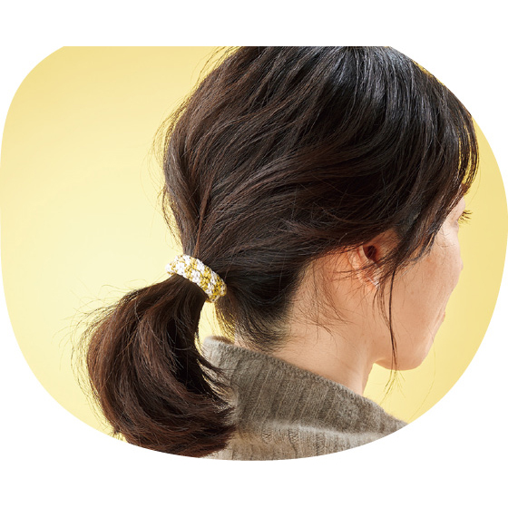 乾燥するとバチッとくる、あのストレスを軽減してくれるゴムブレス。静電気を抑える特殊繊維を使用。ラメ入りのデザインがかわいい♪