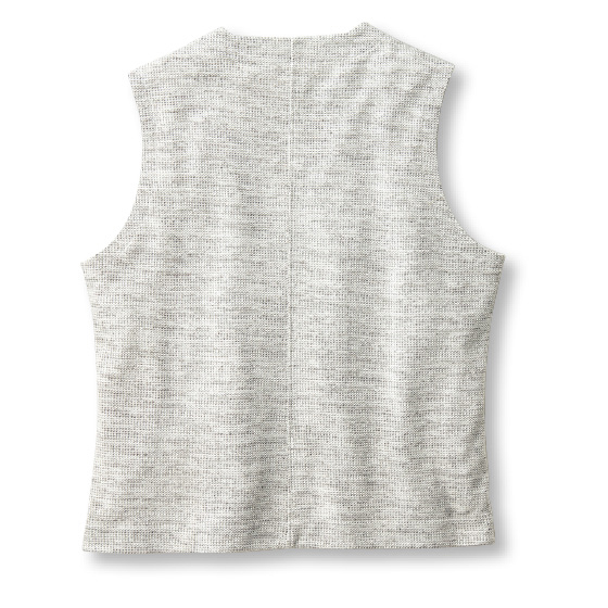 ●素材:ポリエステル68%・綿32%(ニット、鹿の子)、布帛部分(見返し)=綿100%(織物、平織)