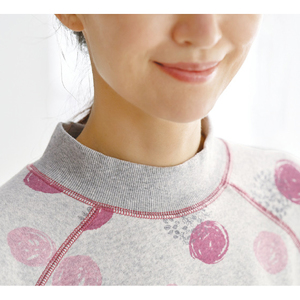 綿混裏起毛でふんわりやわらかな肌当たり。リブ仕様やラグランスリーブで動きもラクちんです。ゆるく立ち上がる衿、袖口、パンツ裾をリブで軽く絞り、スースーしにくく、暖かさをしっかりキープ。