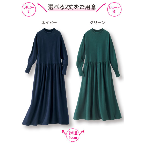 ゆったりとしたドロップショルダーとたっぷりのギャザーで体のラインをカバー。ハイゲージが美しい編地のニット素材で、大人に似合う上品さが魅力。