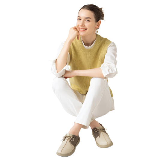 履き口ゴム仕様で着脱しやすく楽フィット。