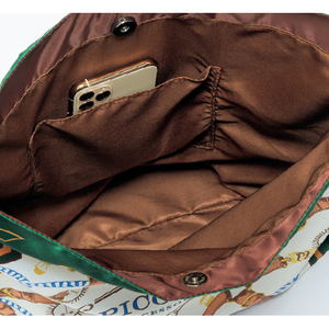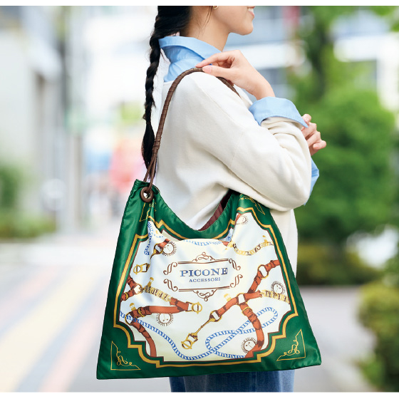 装いをパッと華やかに演出する遊び心あふれるデザインは、南イタリアを感じさせる色使いと表情豊かな手描きタッチが特長の「ピッコーネ」ならでは。薄手で軽いつくりなので、サブバッグとしても重宝します。B4サイズが収納できる大きさです。