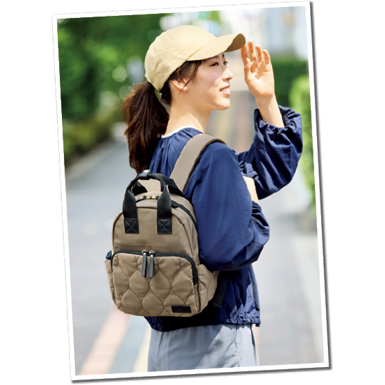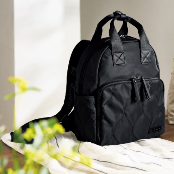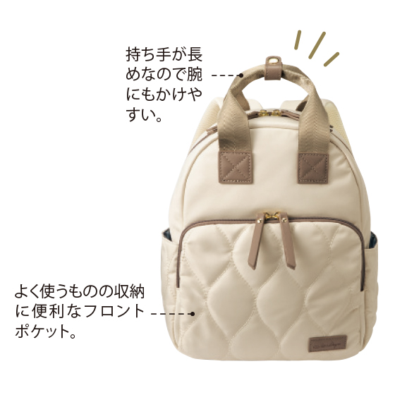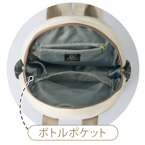 丸みがかわいい、小ぶりなミニリュック。小さくても500mLのペットボトルが入り、仕分け収納ができます。