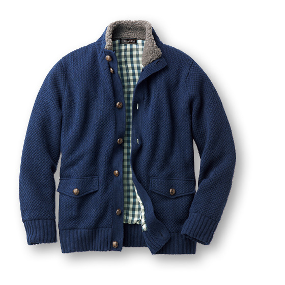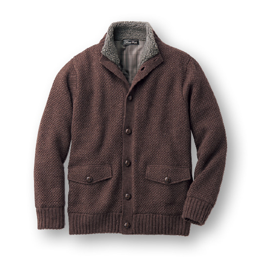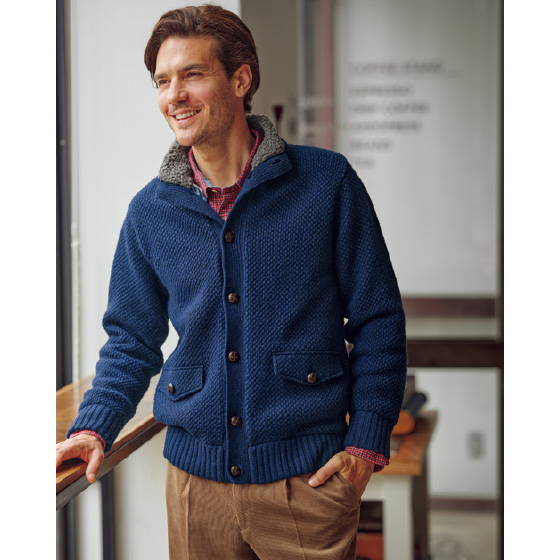 裏地付き&衿裏ボアで暖かな、鹿の子編みトラッドブルゾン