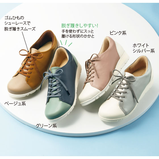 ポップな配色デザインで小粋に。かがまず履けるレザースニーカー。