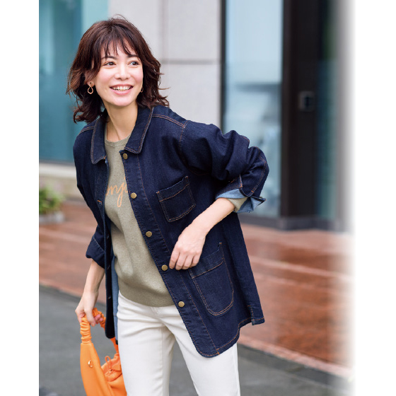 レーヨン混のしなやかデニムで着心地がよく、シルエットもやわらかなカバーオールです。安心感のある丈で大人が気取らずに着られ、季節を超えて活躍するヘビロテ服。
