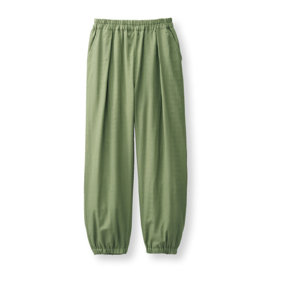 肌が安らぐ2重ガーゼ。ゆるっと動きやすく、ご近所歩きもOK!ウエストはぐるりとゴムでラクちん。
