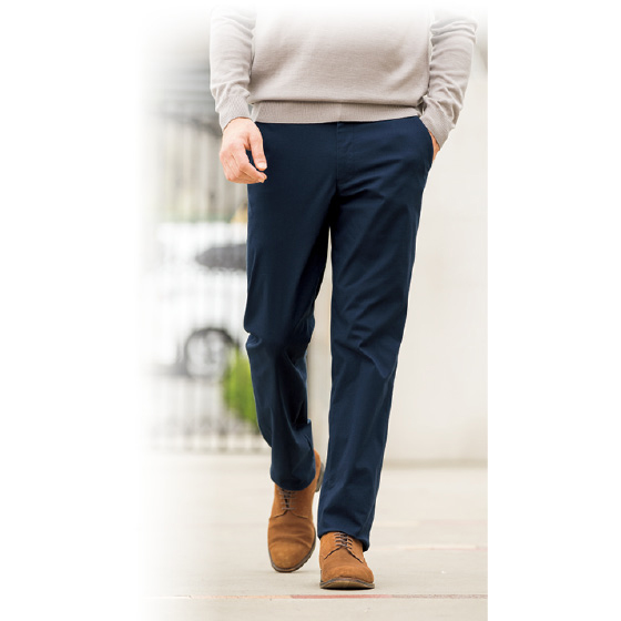 きれいめのヨコストレッチ素材で、たっぷり伸びてすっきりシルエットでも動きやすい。