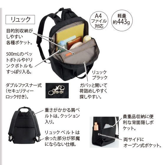 賢い仕分け力で取り出しもスイスイ。旅にもデイリーにも大活躍。