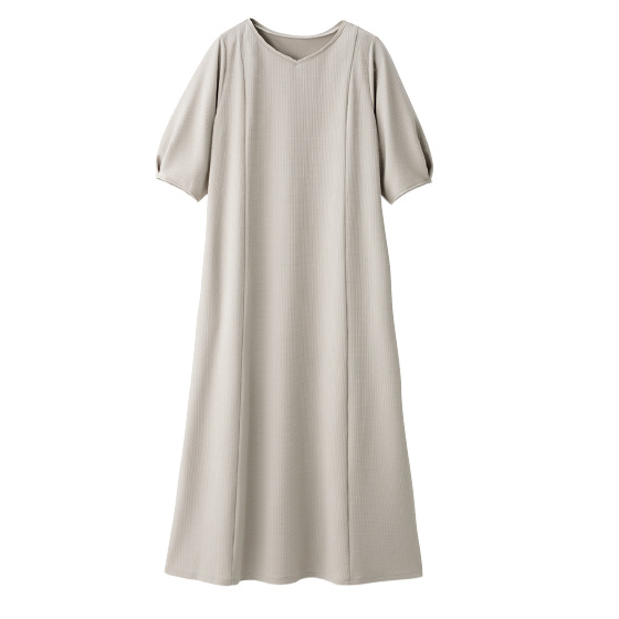 サラリと肌離れして体の線を拾いにくい素材。流れるようなドレープで上品なシルエット。360度伸びて着心地がよく、シワや毛玉、シルエット崩れも抑えるから外出先でもリラクシー。洗濯機で洗えて乾きが速く、乾燥機も使えるほどタフ素材。お手入れに手間なしでヘビロテ。