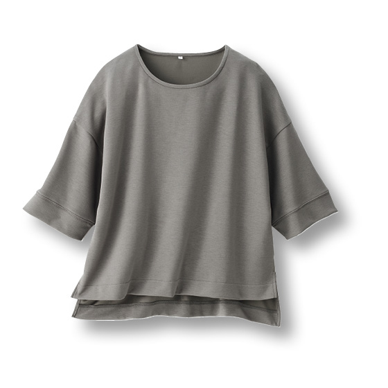 ●素材:ポリエステル50%・レーヨン45%・ポリウレタン5%(ニット、ダンボール・タテヨコのび、接触冷感・吸水速乾素材)
