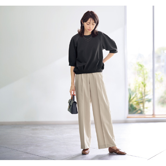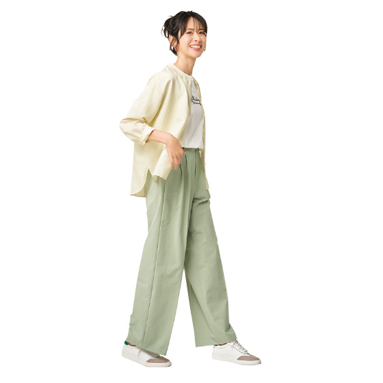 サラッと軽くて、量感のあるワイドなのに軽快。気負わない生地感だから、仕事から遊びまで着回し自在。ワッシャー加工を施した防シワ素材。シワが目立ちにくく気になりにくい生地で、はくだけで決まるキレイ見え。ざぶざぶ丸洗いできて乾きが速く、面倒なお手入れが不要。汗や雨もすぐに乾いてカラッとドライタッチ。※春夏秋、3シーズン着用できます。