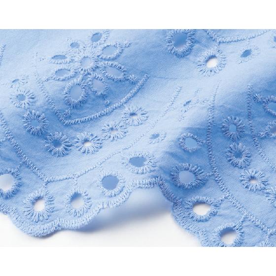 華やかさも涼しさも叶えるシフリー刺繍を贅沢に使用。身頃部分は2枚仕立てだから、透けを気にせず着られます。