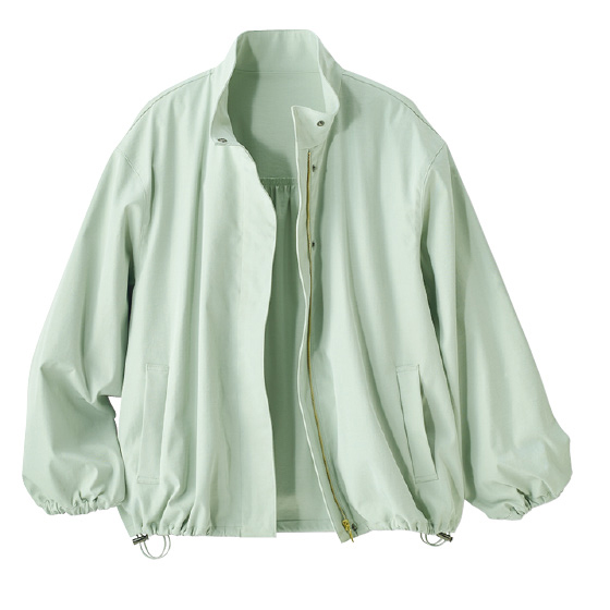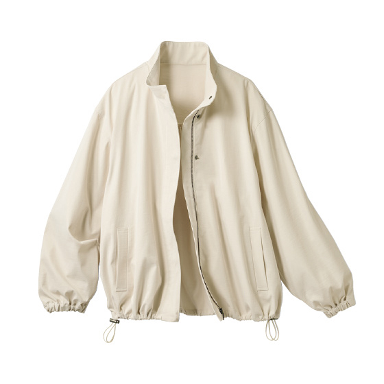 多機能なのに軽くてやわらかな着心地。絶妙なスタンドカラーが雨風や日よけにも活躍。裾スピンドルでシルエット調整OK。