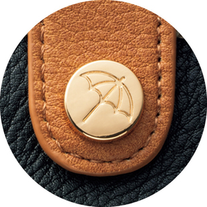 傘マークのカシメがさりげなく高級感を添えるアクセント。