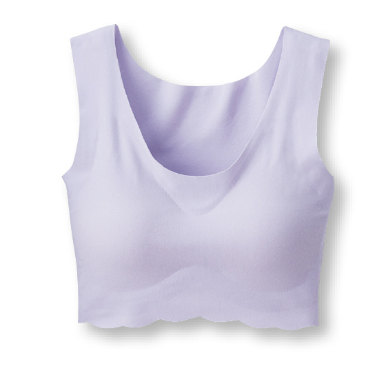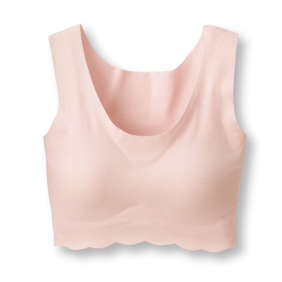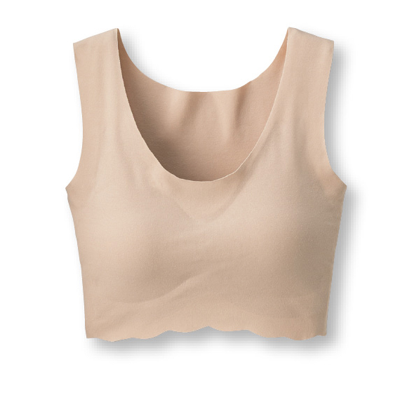 縫い目もゴムもなく、肌になめらか。完全無縫製カップ付きハーフトップ。