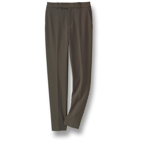 ごく肉厚で暖かく、肌なじみがなめらかな生地は、フランスの生地メーカー「Carreman社」が企画。大人向きの品のよさを感じさせる風合いで、コーデを格上げします。シルエットは心地よく安定するテーパード。大きな前ポケットが太ももの丸みをカバーし、4本のダーツでヒップをすっきり見せます。生地は布帛に見えて、実はストレッチニット素材。どんな動作にもぐんぐん伸び、戻りもよくてシルエットをきれいなままキープします。※着用シーズンは秋冬です。
