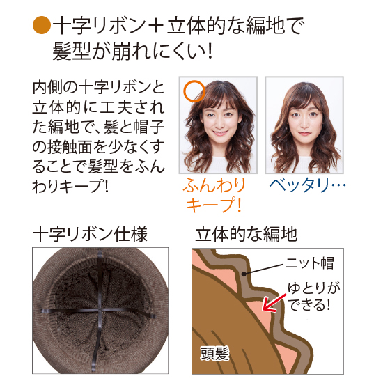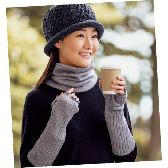 熟練職人が蓄熱糸で編み上げたニット帽。やさしく包み込んで熱を逃がしにくく、耳まで暖かです。しかも独自の工夫で髪型が崩れにくく、ボリュームのある編地で小顔効果も。おしゃれを楽しみたいお出かけにぴったりです。