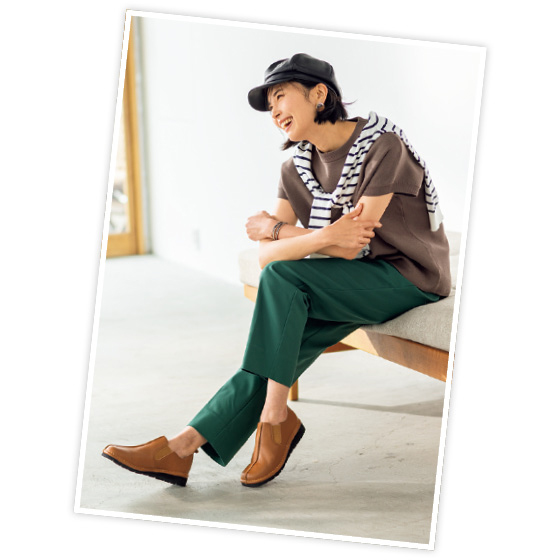 アウトステッチを施した足なじみのよい秋冬カラーのスリッポン。両サイドゴムで脱ぎ履きしやすく、屈曲性のよい適度な厚みのソールで歩きやすい仕様。パンツにもスカートにも合わせやすく、履くだけで大人らしいカジュアルスタイルに。