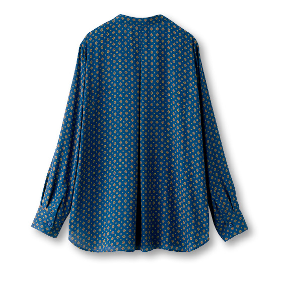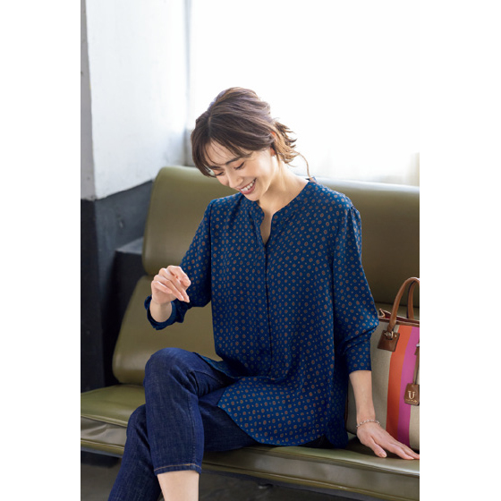 バックサテンを使った軽やかでなめらかな着心地。上品に開いた比翼の前立てや、ゆるっと落ちるシルエットで着映え効果も高め。