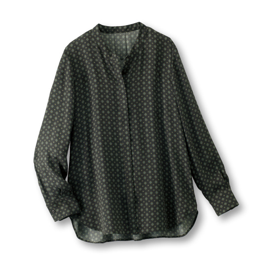 洗濯機で洗えるバックサテンブラウス(長袖)