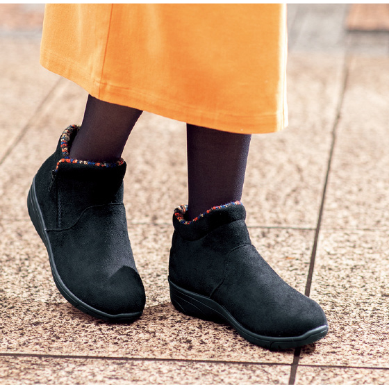 歩きやすさを追求した「パンジー」。幅広さんにおすすめ!外側ファスナーで脱ぎ履きラクラク。※総丈:約13cm(かかとの高さを含む23.0cmの場合)。