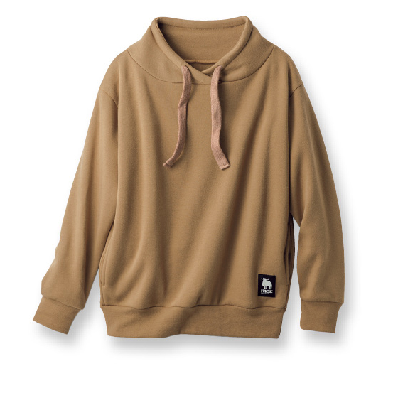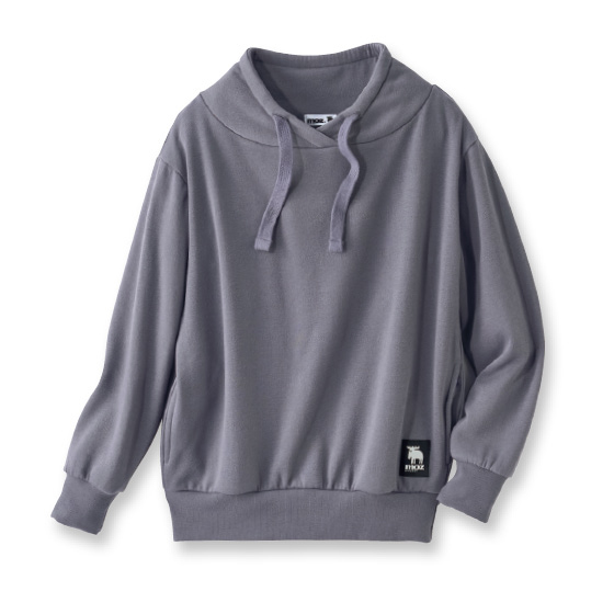 ちょっと横になりたいときにうれしい、フードを省いたパーカー風デザイン。よい高さの衿が首元をやさしく包んで、暖かな着心地です。フードがないから洗濯時にかさばりにくく、冬のデイリーに活躍。