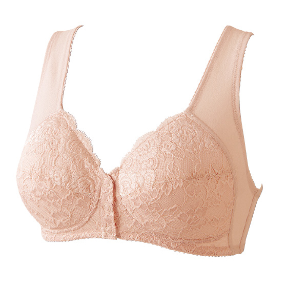 表面はレースが華やか。着脱しやすく、安定感のあるスナップ3個留めです。