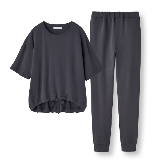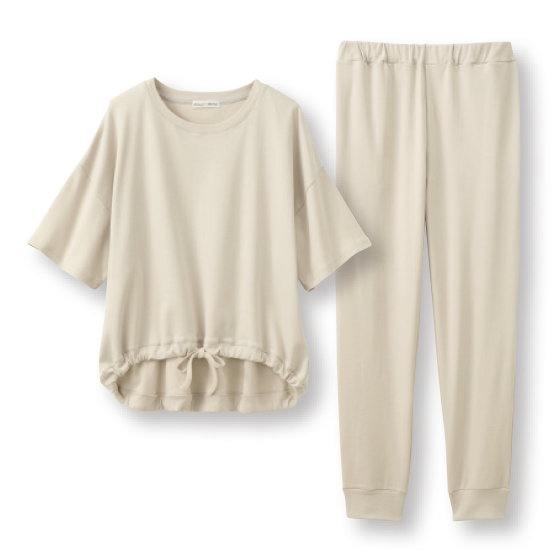 綿100%のシルケットスムース素材を使用。しなやかな肌触りでゆったり着られて、ルームウエアとしてもおすすめです。