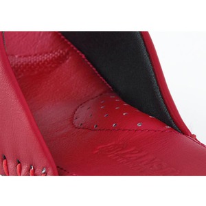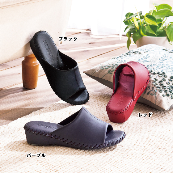 靴メーカーならではのこだわりで好評のパンジー室内履きに、おしゃれなヒール付きが登場! 約4.5cmの疲れにくいヒール高で、履き口は足入れしやすいゆったりめ。クセになりそうなやさしいフィット感は手づくりだからこそ。中敷に抗菌剤を施し、清潔さに配慮しているのもポイントです。 履き口ゆったりで足ラクちん。底面の前後2カ所にすべり止め付き。