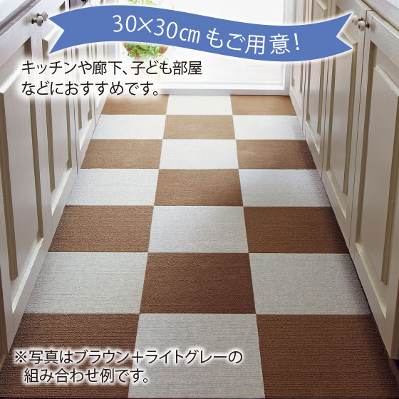今回の新居で、アイボリーとブラウンの格子にセット。やっぱり全部一度に洗うのは難しいので、30×30を購入してみました。薄手なので隙間にも入るし、全てカットしなくても、切れ目作って折っての設置も可能です(画像参照)。