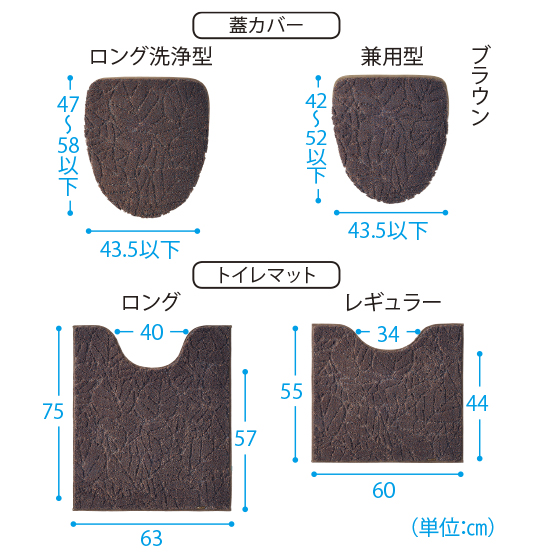 ●毛足長:トイレマット=15−8mm(ハイカット&ローループタイプ)、蓋カバー=10−4mm(ハイカット&ローループタイプ)