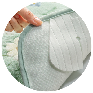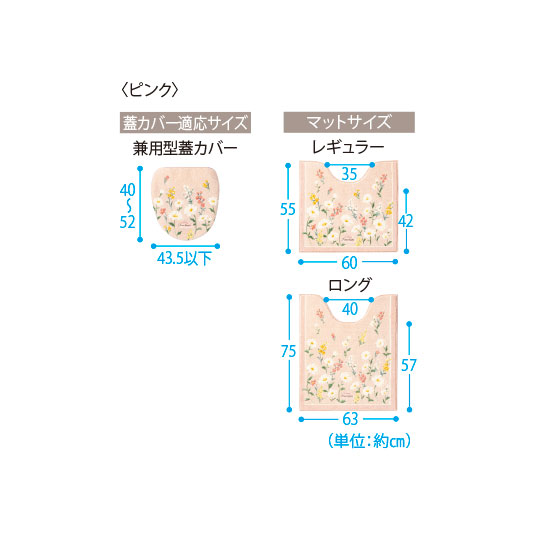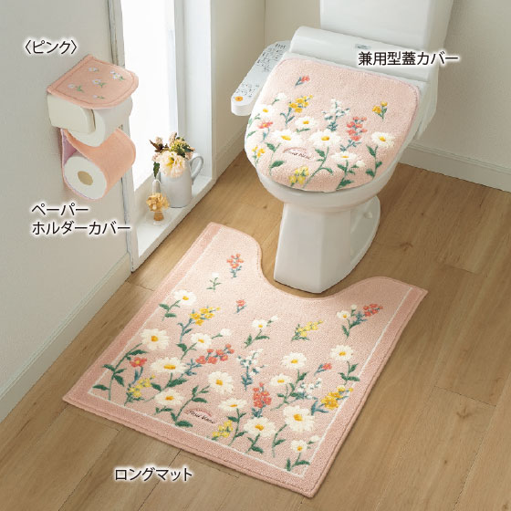 日本製ならではの繊細なプリントで柄を美しく表現。立体フィット縫製と吸着シートで、O・U型にも洗浄型にもOK!ペーパーホルダーカバーは可憐な刺繍が素敵なアクセントに。
