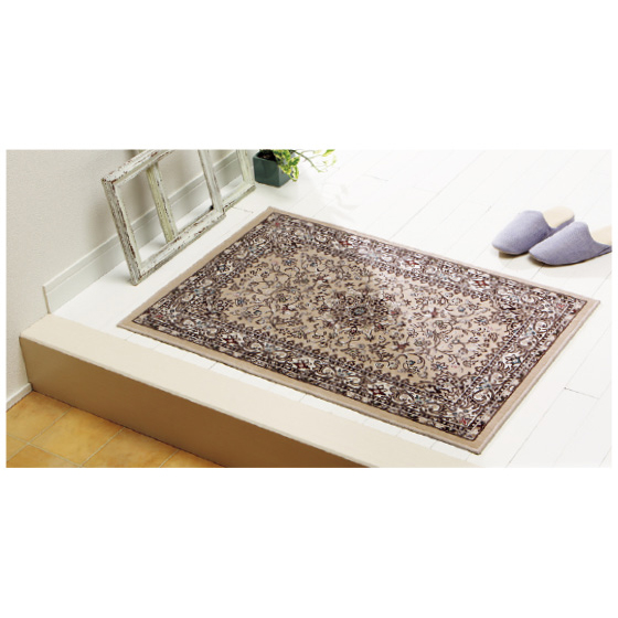 ●素材:ベージュ/アクリル85%・綿15%(抗菌防臭加工)、ブルー/アクリル61%・綿39%(抗菌防臭加工)、裏面=不織布張り(玄関マットはすべりにくい加工)