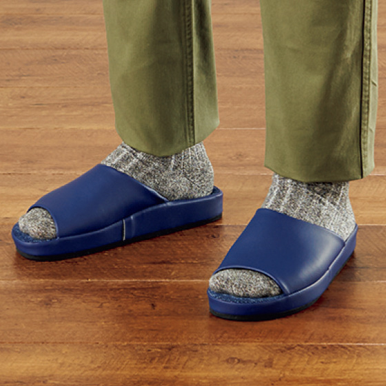 本品は靴インソール技師の井戸さんと増田徳雄商店が、人間工学に基づいてつくったこだわりのルームシューズ。「ジャストフィット」のために、サイズは1cm刻み。足裏の形に添ってなめらかな曲面を描くソールは、足の裏に心地よくフィットします。厚みのある底、やわらかいけれど沈み込まない独自のクッション性…まさに名前のとおりフット(足)快=B食事の支度など、「気づけば長い時間立っている」ときにこそ威力を発揮する逸品です。