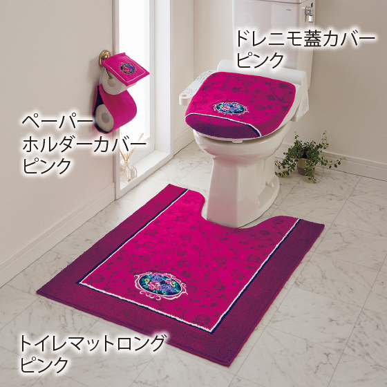 ●素材:マット・蓋カバー=パイル糸(黒)/モダクリル100%、パイル糸(その他)/アクリル100%、ペーパーホルダーカバー=綿75%・ポリエステル25%(ペーパーホルダーカバー成型部分=ポリプロピレン)、裏面=マット/ホットメルト(すべりにくい加工)、蓋カバー/吸着シート(アクリル樹脂)