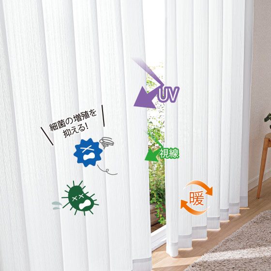 カビや細菌の増殖を抑制する加工付き。紫外線を90%以上カット。