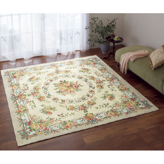 はっ水ジャカード織ラグ「ブーケ」