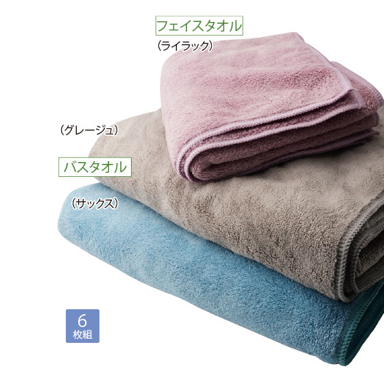 吸水性に優れ、速乾性も高いマイクロファイバー素材を使用したバスタオルとフェイスタオル各3枚、6枚セットでお届けします。ふだん使いはもちろん、軽いので旅行やジムなどでも便利です。