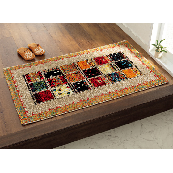 色鮮やかなギャベ調柄をウィルトン織で表現した緻密な美しさ。