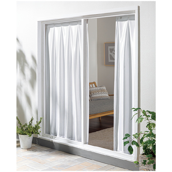 外からは見えにくく、お庭の景色は見えやすいので、カーテンを閉めたときの圧迫感が減少します。遮熱効果が高いので、外部の温度を室内に伝えにくく、室内の温度を外部に逃がしにくい。