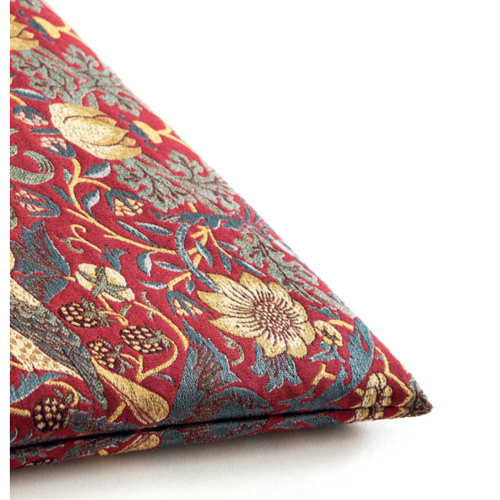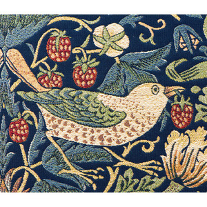 1883年、夏の別荘ケムルスコット・マナーの家庭菜園で、いちごをついばむツグミを見たモリスがデザインしたといわれる代表作です。