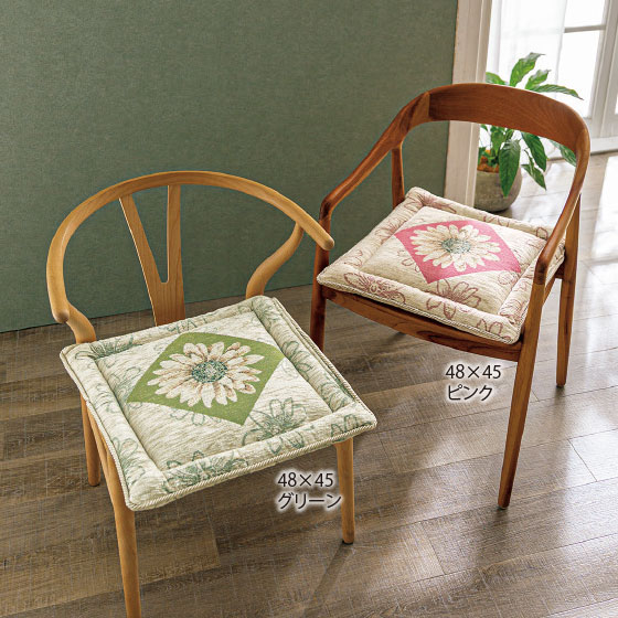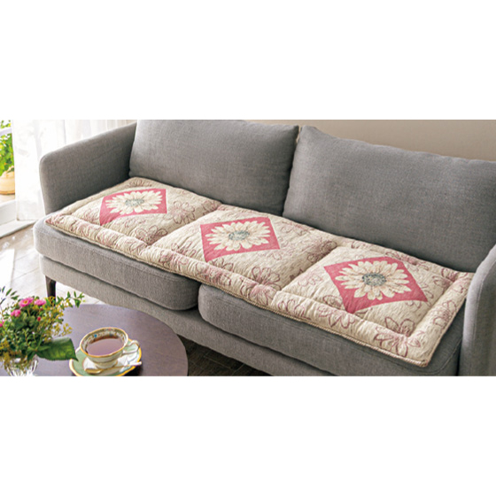 敷くだけで春らしく。ソファの座り心地もアップ。
