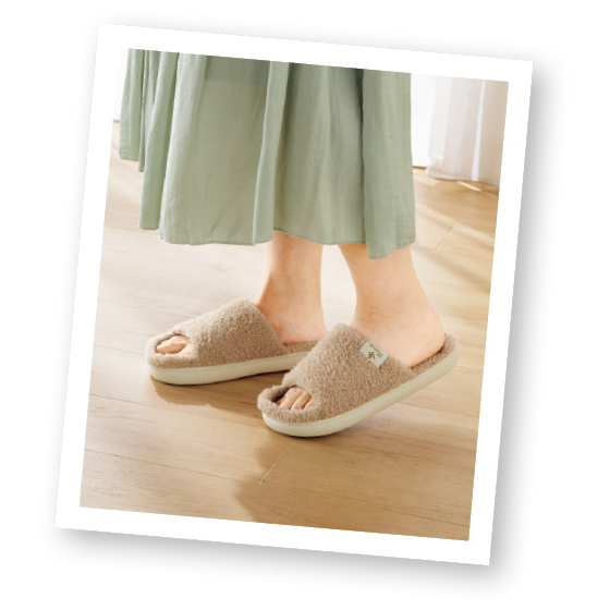 タオルに包まれるようなやさしい肌触り。ウレタンのほどよい弾力で快適な履き心地です。
