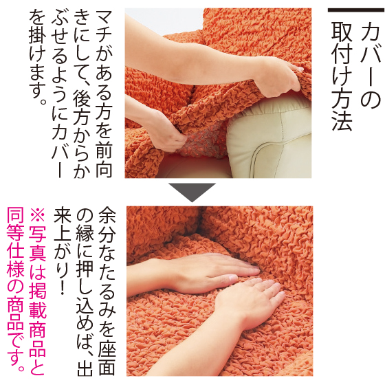 手触りの良いサラリとした綿混素材で、オールシーズンお使いいただけます。タテヨコに伸びるストレッチ素材だから、今あるソファにも合わせやすい。