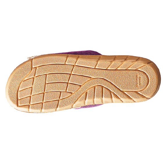中板はざっくりとしたジュート混で足裏サラサラ。甲部分はトーションレースと表情豊かなスラブ生地の切り替えで通気性がよく見た目も涼しげ。汗ばむ季節も心地よくさわやかな足元に。足の形に成型されたインソールが足裏にフィット。パタパタしにくく歩きやすい。底面はクッション性があるEVA素材。踏み心地快適、汚れたら拭くだけ。