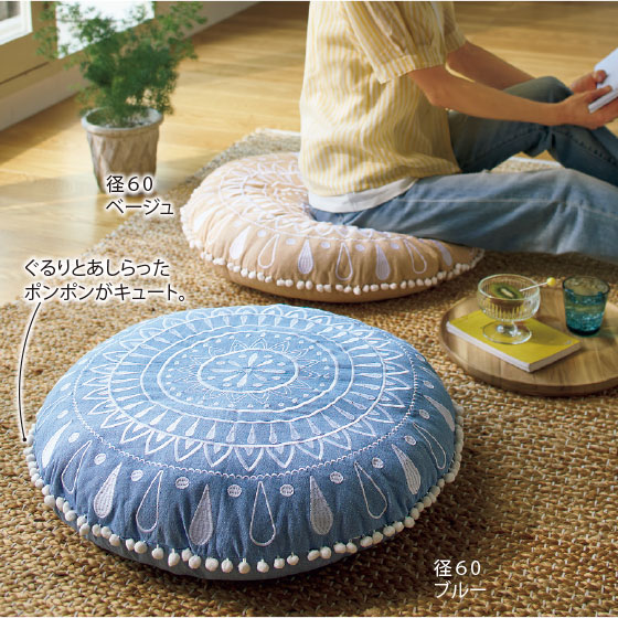 綿100%生地に、手づくりのぬくもりを感じる刺繍入り。
