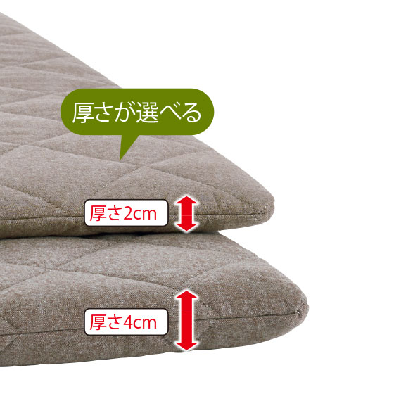 中材に東洋紡エムシー(株)の高機能クッション材「ブレスエアー(R)」を使用。ムレにくく、ヘタリにくい。やわらかタッチの綿100%先染め起毛素材を使用し、1年中使えます。