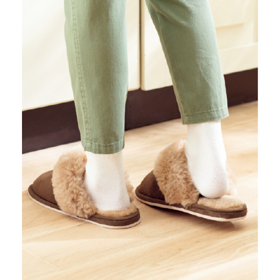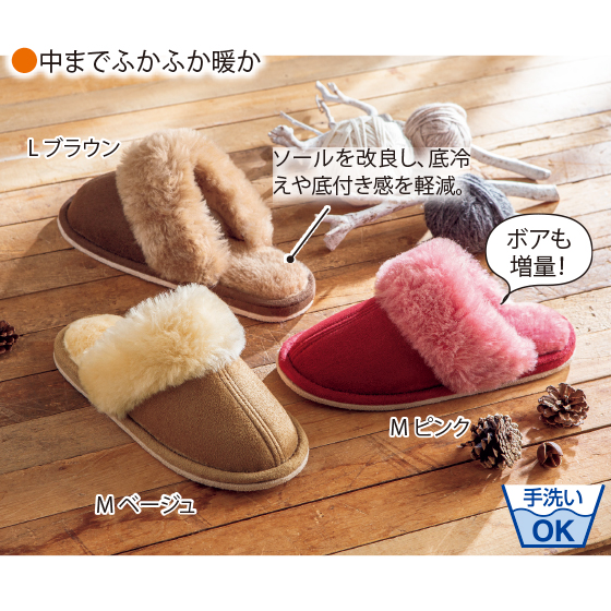 ムートンみたいな高級感とぬくぬくの履き心地が好評のスリッパが進化。羊毛ボアもたっぷりでさらに暖かに。