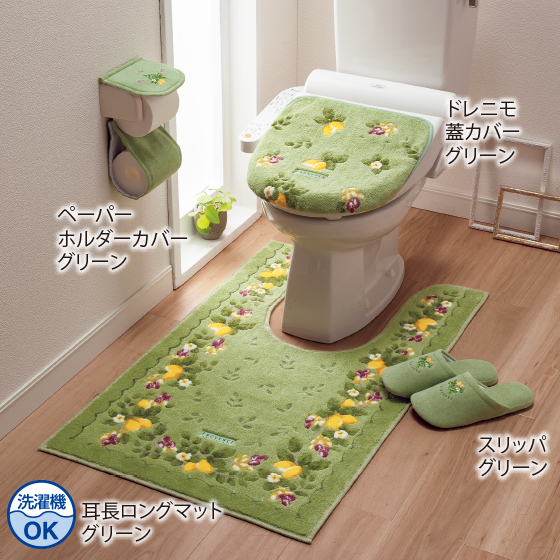 ●蓋カバー・マット=日本製、スリッパ・ペーパーホルダーカバー=中国製